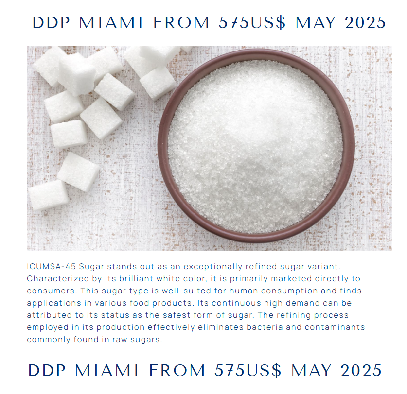 - Competitive Pricing: We provide some of the most competitive Delivered Duty Paid (DDP) prices for ICUMSA 45 sugar in Miami, ensuring value for our clients.